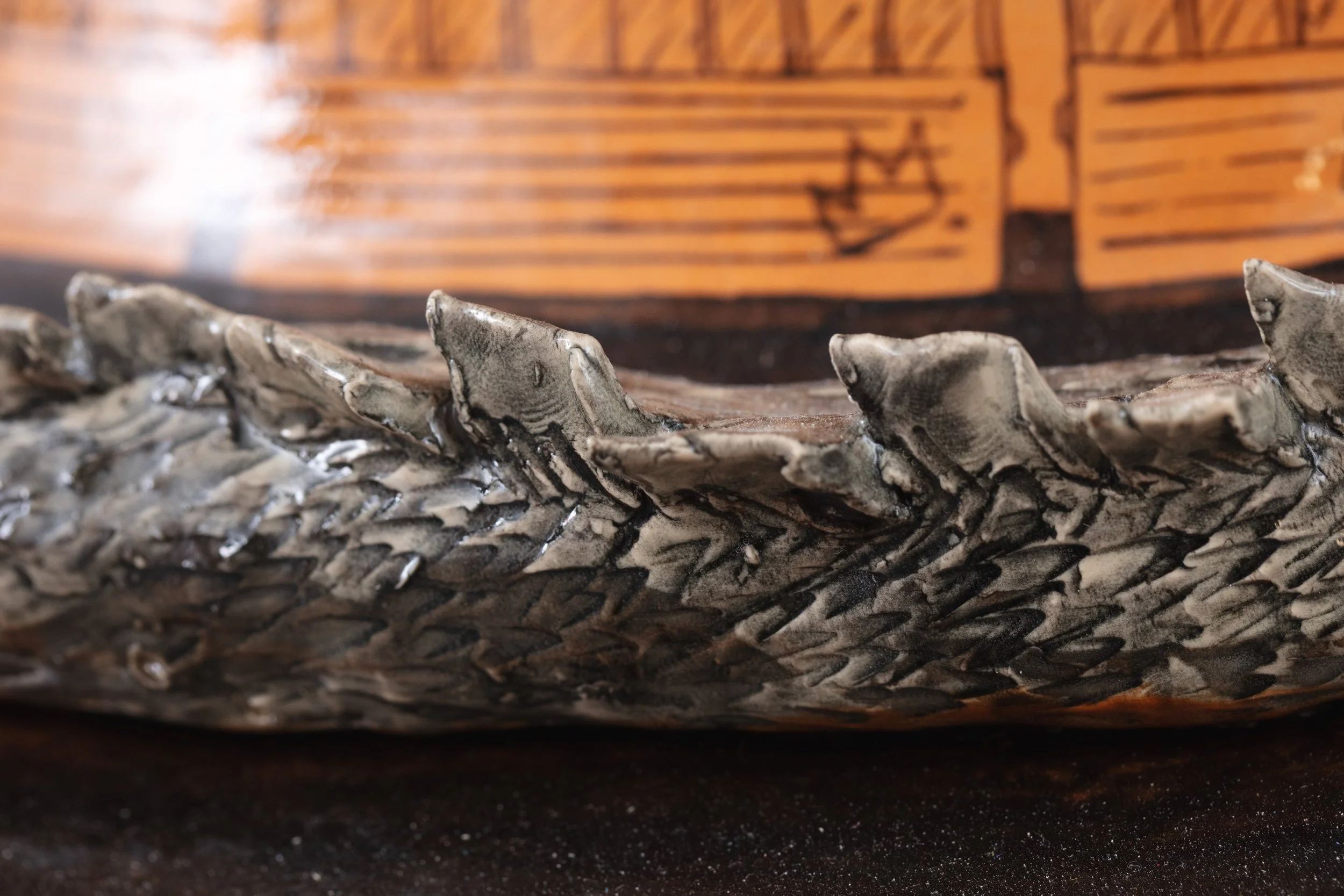 The Life and Times of Dragon Clemente, from the Orange and Black Series. Vessel. 2024. Glazed stoneware. 33.5" (H) x 17.5" (W) x 17.5" (D)