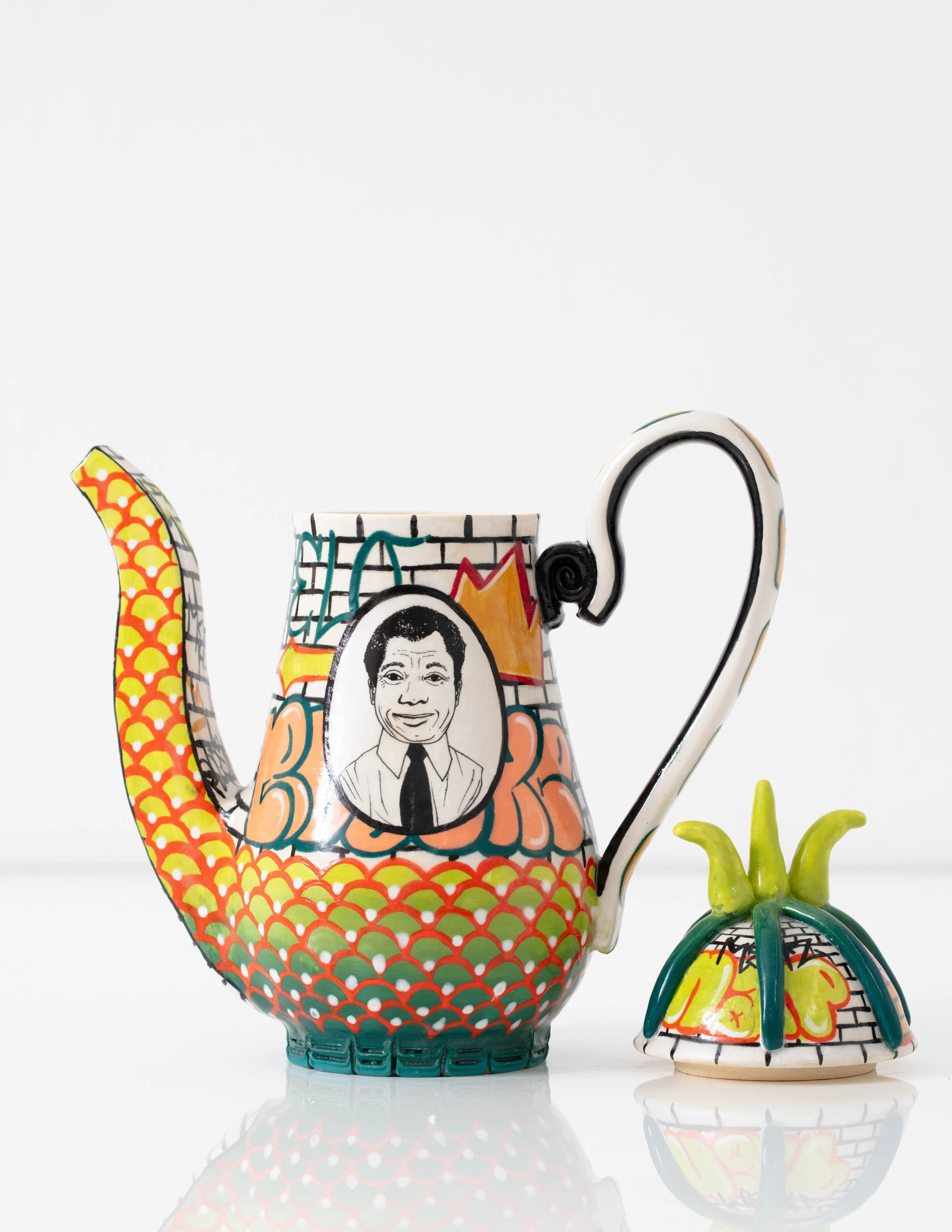 Roberto Lugo: James Baldwin (2024). Glazed stoneware 10.5" (H) x 4.5"(D) x 9" (W)