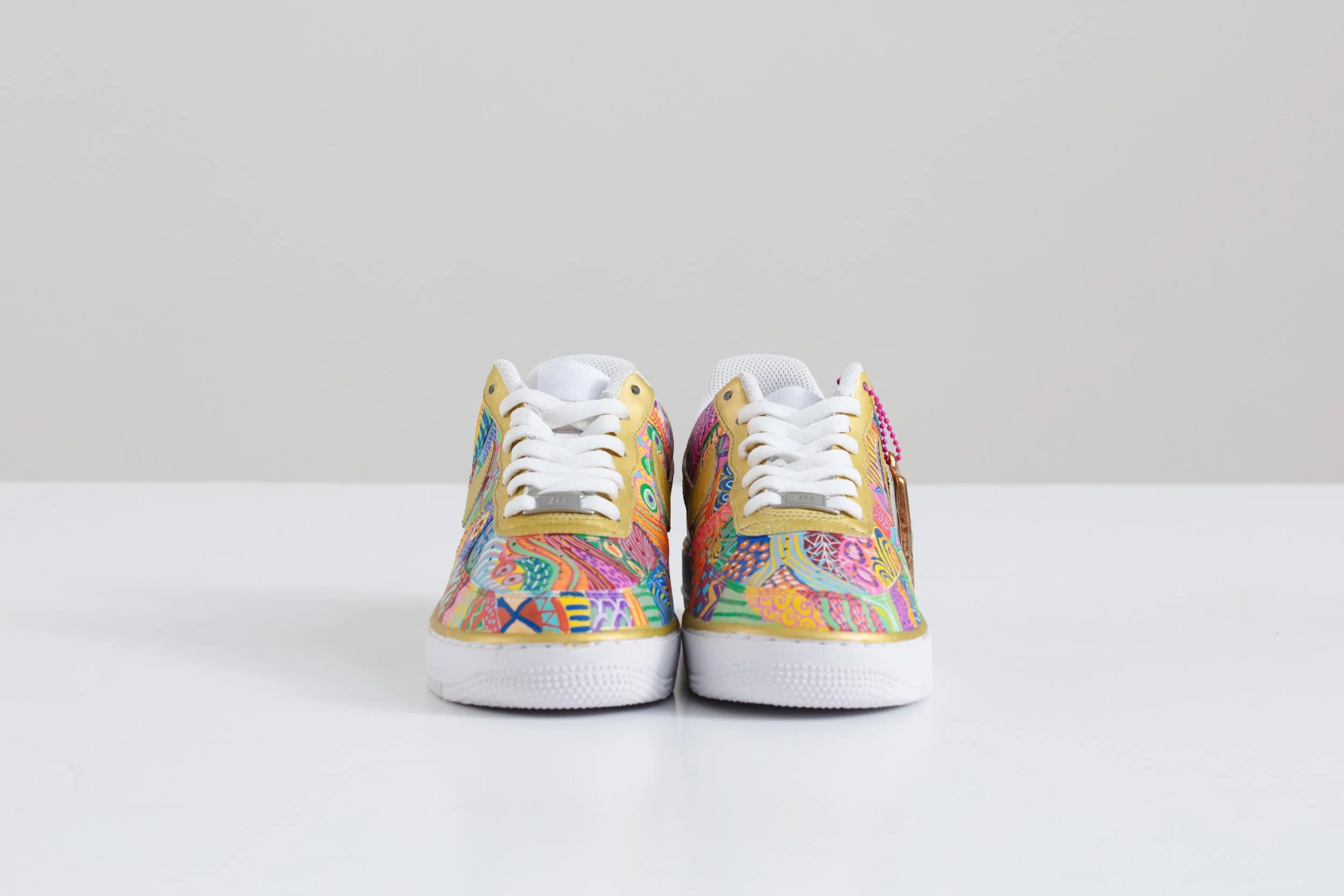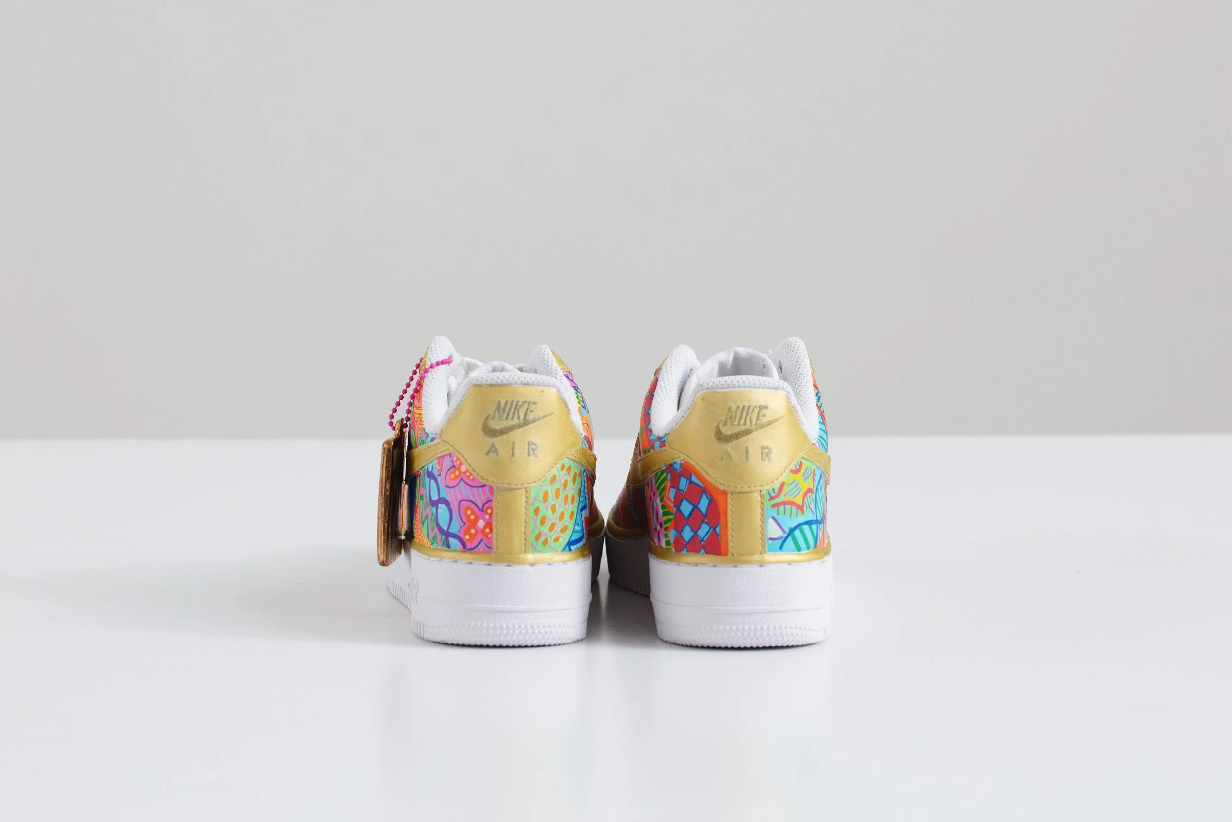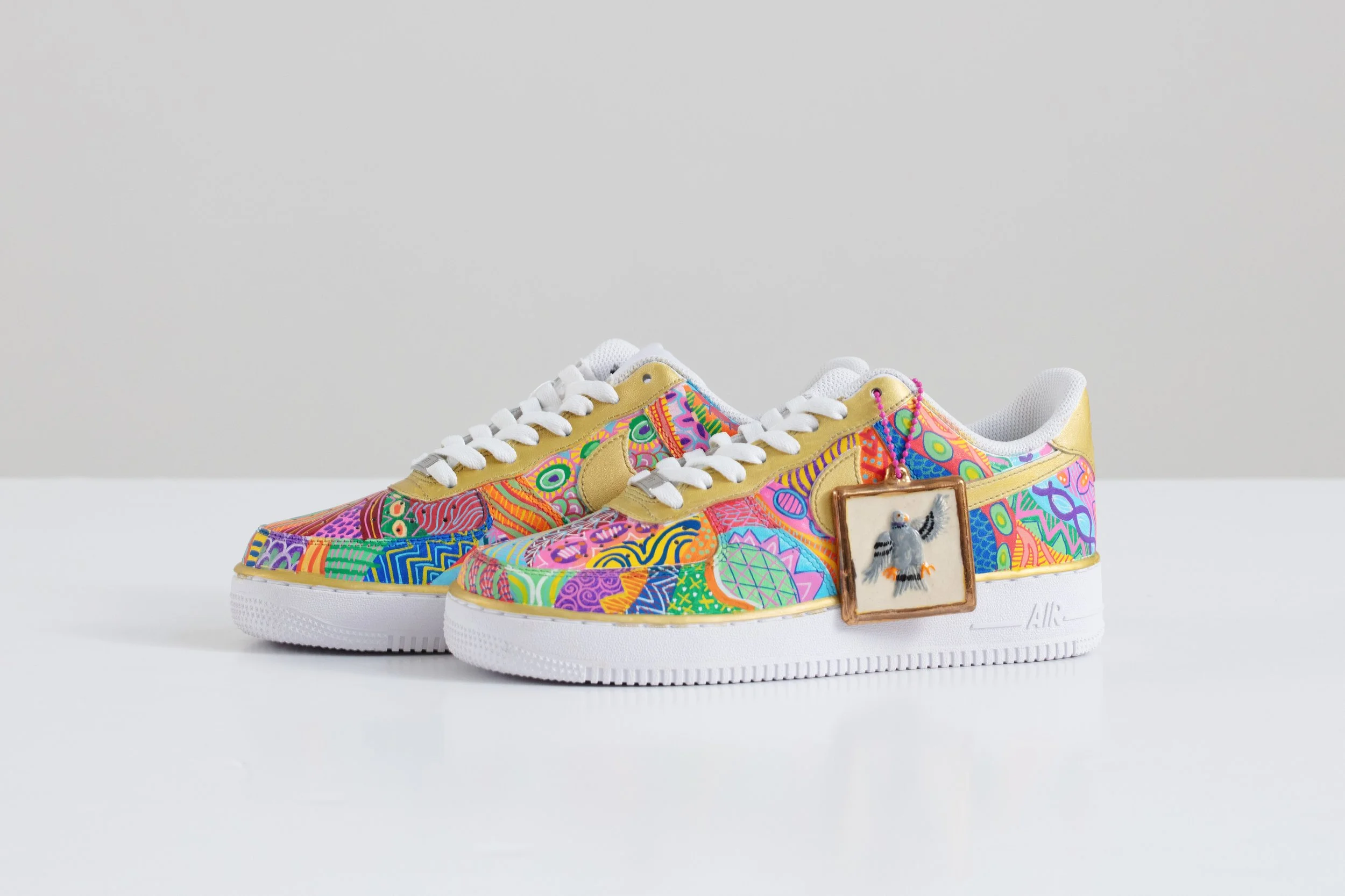 Roberto Lugo: Fooji. 2024. Pair of Air Force 1s with Air Pigeon Tag.